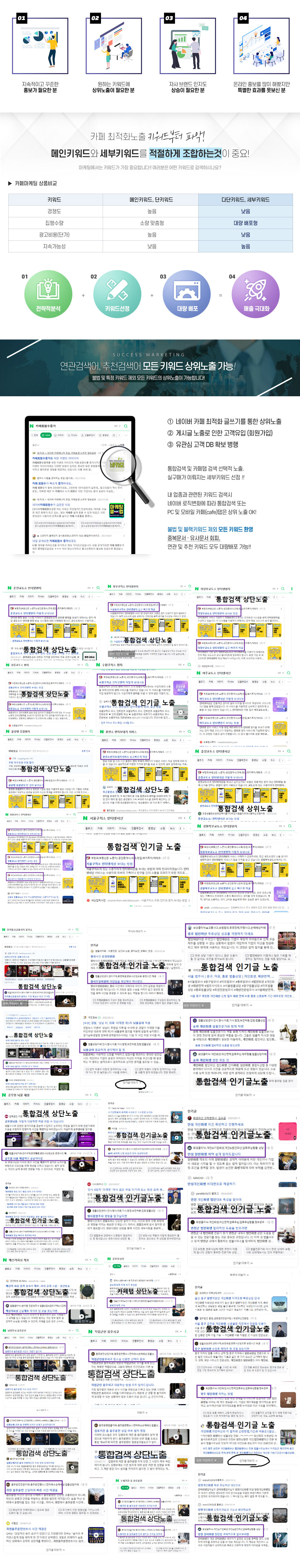 정보성/홍보성/후기성 관계 없으며, 특정내용을 홍보하거나 DB를 수집하는등의 목적으로 활용할 수 있고, 보험/법률등 전국키워드 또는 키워드가 많은 업종의 경우 매전환율이 높은 키워드노출이나 홍보효과를 저렴한 비용으로 기대할 수 있습니다.